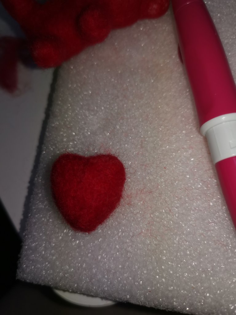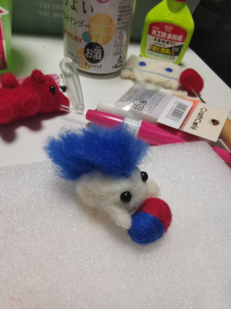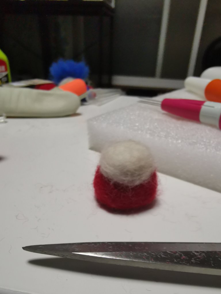 一色で丸を作ってその上から違う色をチクチクしました!意外に、綺麗に二色分かれました!錠剤みたいになりました(笑)上達してるかは、謎ですね。