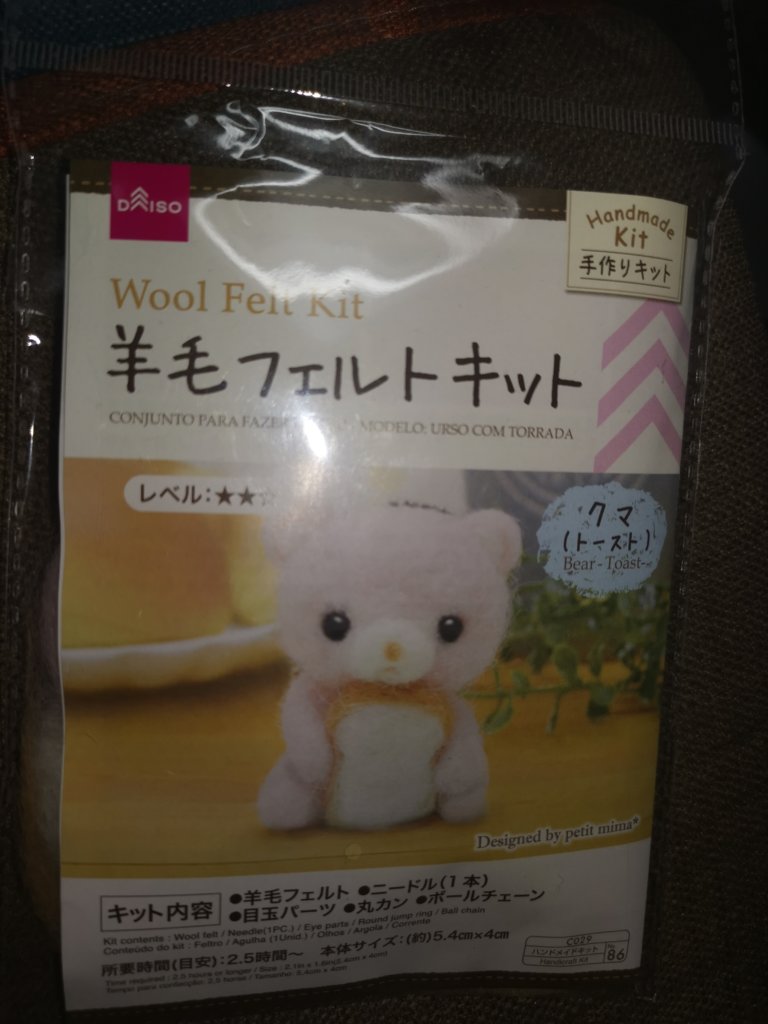 今回は、パンを持った子熊を作ってみたいと思います!初の100均フェルト☆