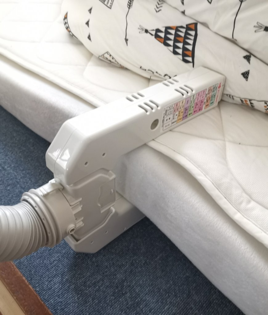 布団とマットレスの間にいれて、温風を送り込みます。この時に、枕も布団の中にinすると枕も乾燥してくれます。