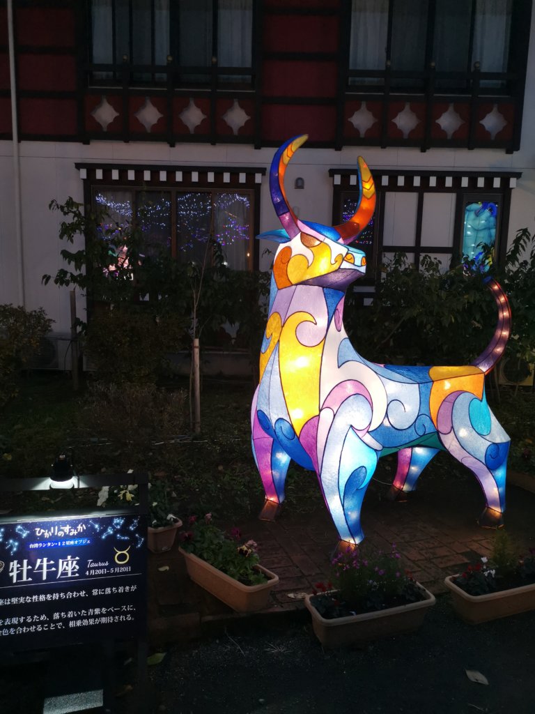 入り口付近に12体の星座たちをモチーフにしたイルミネーションが展示してありました!!