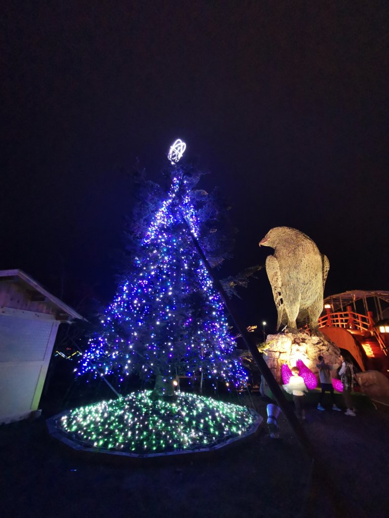 クリスマスツリィーの小さいやつ(笑)そのよこに鷹のイルミネーションがあるんだけど、コンセプトが謎ね