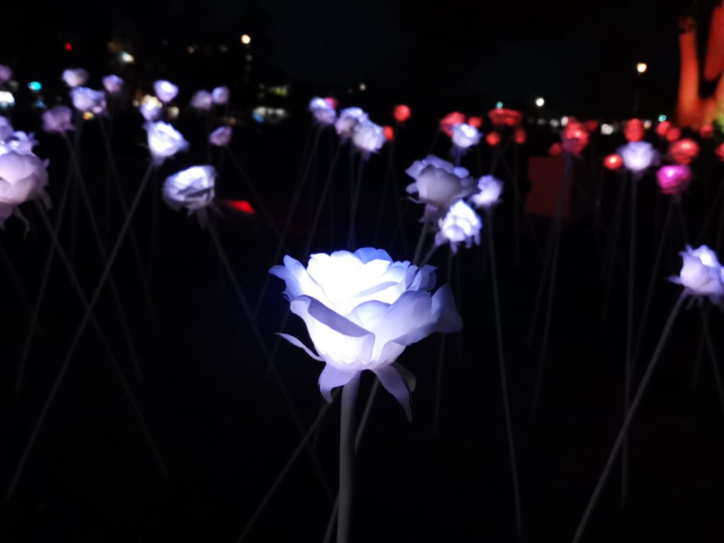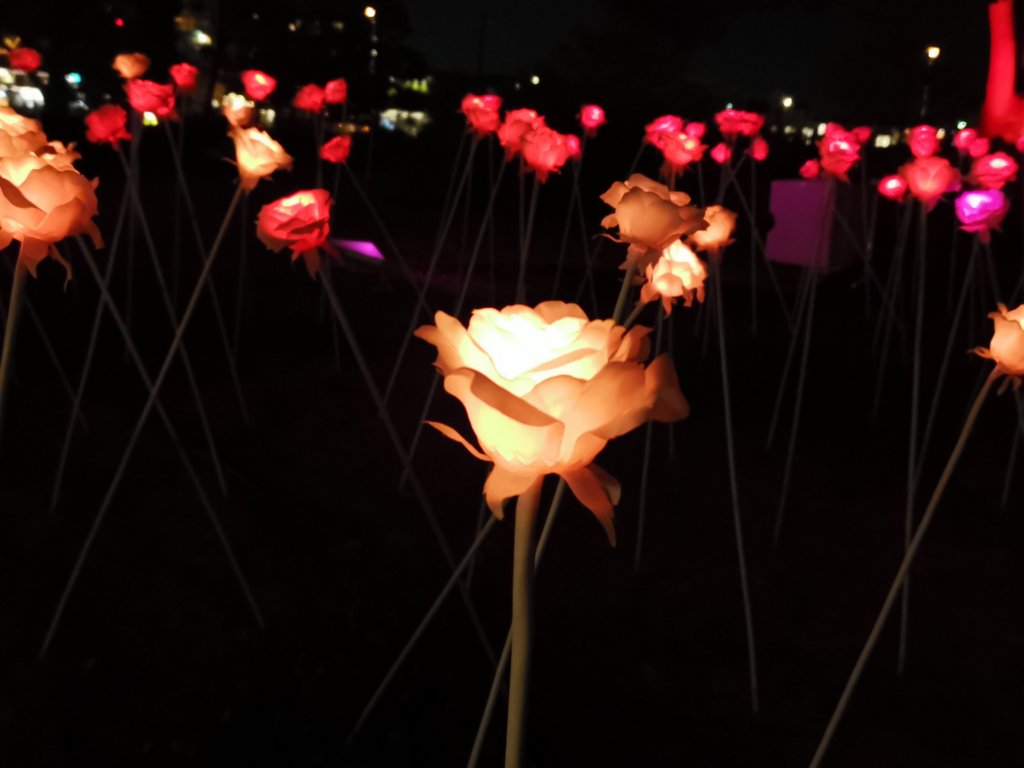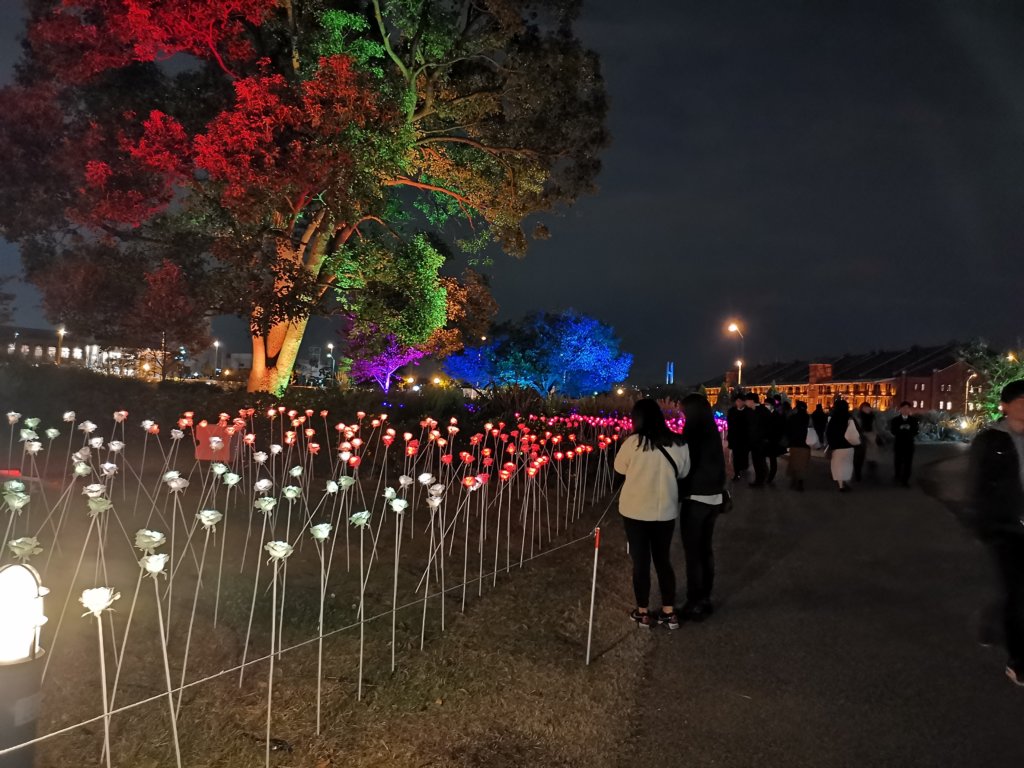 赤レンガに向かう途中にバラのLEDイルミネーションがありました!白や赤やオレンジ・紫とカラフルなイルミネーションがお出迎え!