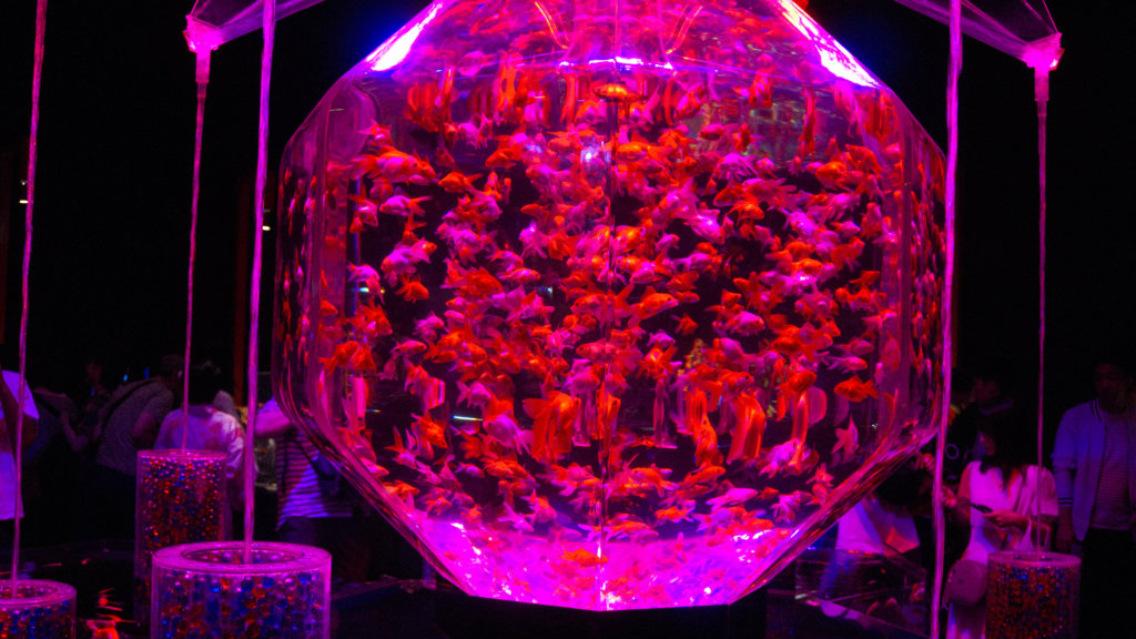 まとめると、一万匹の金魚を容器と光で演出したイベント…金魚イベント!!