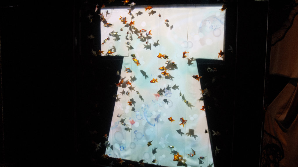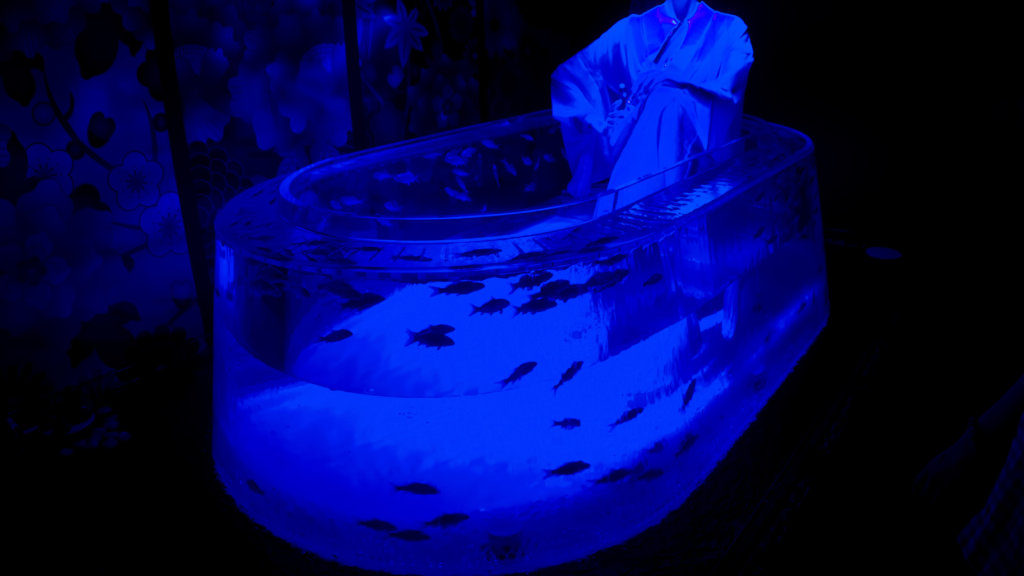 金魚というか、ウォータアートだね!水と光のアート!芸子さん的な…江戸的な感じ?