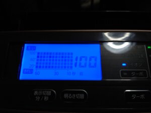 こちらは、電気をONにして測定中の画像ですね。しばらくすると、数値値が上がっていきます!!数値によって自動で吸い込み吸引力が変化する優れものなはず…。